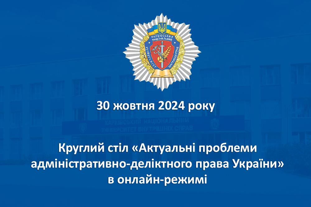 30 жовтня 2024 року у Харківському національному університеті внутрішніх справ відбудеться круглий стіл «Актуальні проблеми адміністративно-деліктного права України».