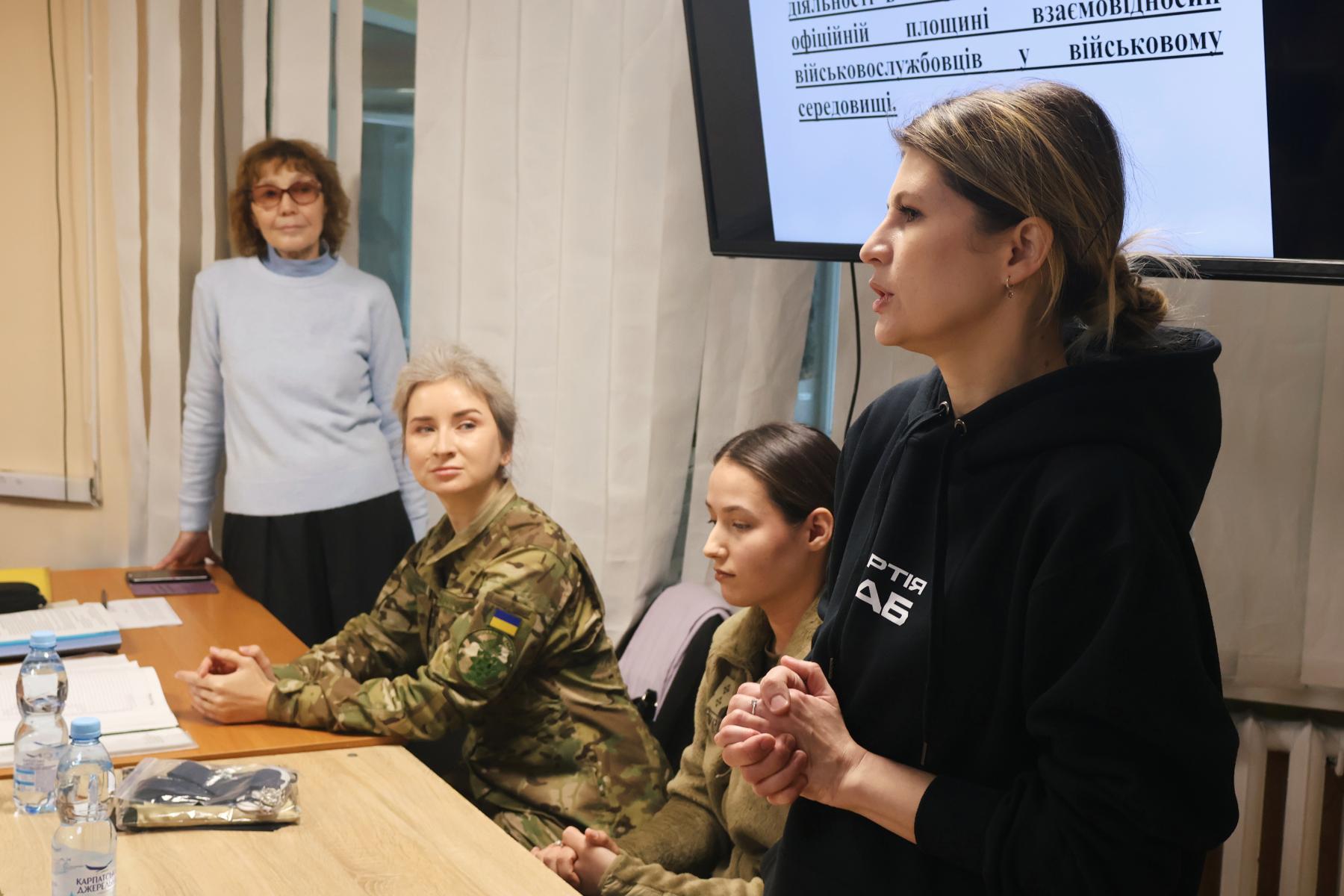 Елізавета Фулітка зосередила увагу магістрів на важливості напряму S-5. Вміння офіцера комунікувати з громадами, волонтерами та міжнародними партнерами безпосередньо впливає на успіх бойових операцій та загальну безпеку підрозділу.