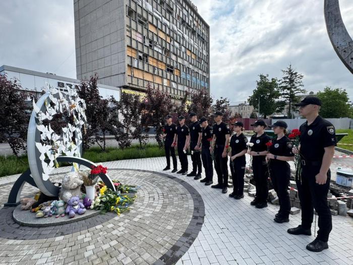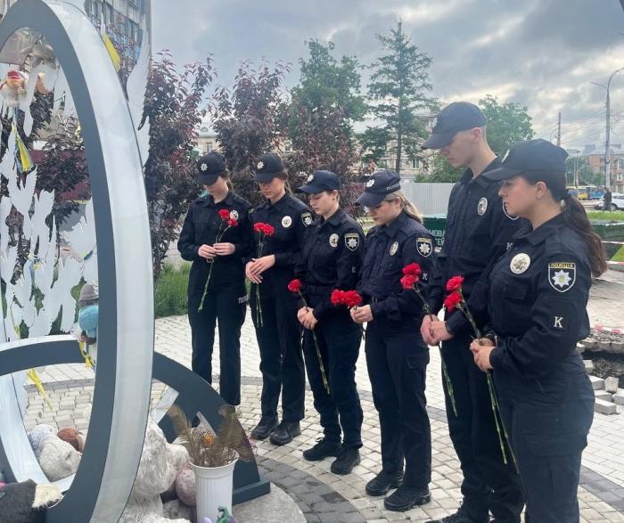 Higher education students of Kharkiv National University of Internal Affairs, taking into account the security component, honored the memory of the fallen Ukrainian children with a minute of silence and put flowers at the memorial signs that perpetuate the heroic resistance of Ukrainians and the memory of all victims of the war..jpg)