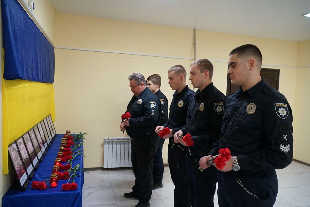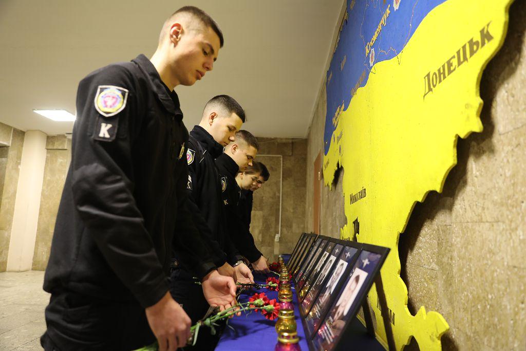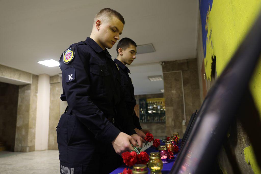 At all locations of Kharkiv National University of Internal Affairs, students and university staff put flowers and lit candles of remembrance near the portraits of the fallen police officers and pilots: Minister of Internal Affairs Denys Monastyrskyi, First Deputy Minister Yevhen Yenin, State Secretary of the Ministry of Internal Affairs Yurii Lubkovych, Deputy Head of the Patronage Service of the Ministry of Internal Affairs Tetiana Shutiak, Head of the Protection Division of the Internal Security Department of the NPU, Police Lieutenant Colonel Mykhailo Pavlushko, Senior Operative in the Internal Affairs Department of the 4th Division of the Internal Security Department of the National Police of Ukraine Andrii Marinchenko, Mykola Anatskyi, Leading Inspector of the Communication Department of the Ministry of Internal Affairs, Oleksandr Vasylenko, aircraft commander and instructor of the Special Forces helicopter squadron, Kostiantyn Kovalenko, pilot of the Special Forces helicopter squadron, and Ivan Kasianov, flight mechanic of the Special Forces helicopter squadron, ensign of the Civil Defense Service.