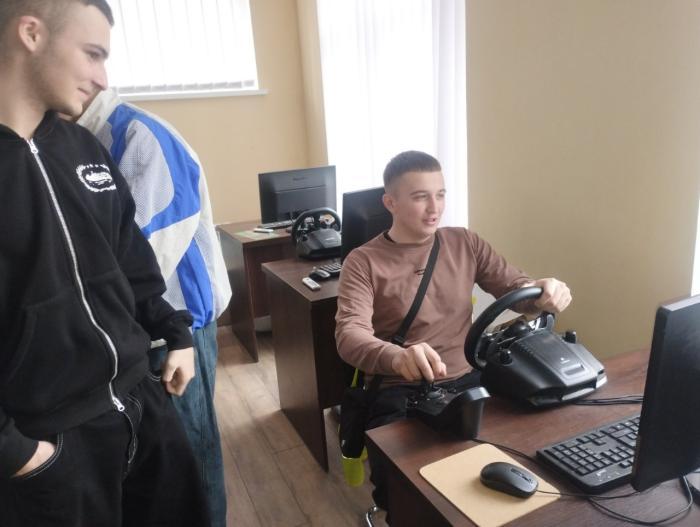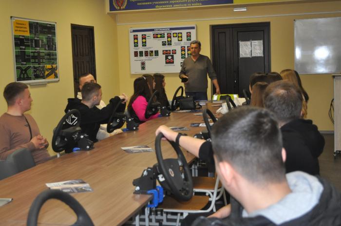The Head of the driving courses, Oleksandr MARUNCHAK, introduced high school students and the teaching staff of the Rukshyn Autonomous District of Chernivtsi region to the activities of the Driving School for People with Disabilities of KhNUIA. He told the young people how future drivers master theoretical and practical courses, and also introduced them to the classrooms where students practice their primary driving skills on computer simulators that are maximally adapted for people with disabilities. The students personally tried them out at work and inspected the training cars.