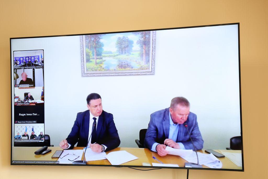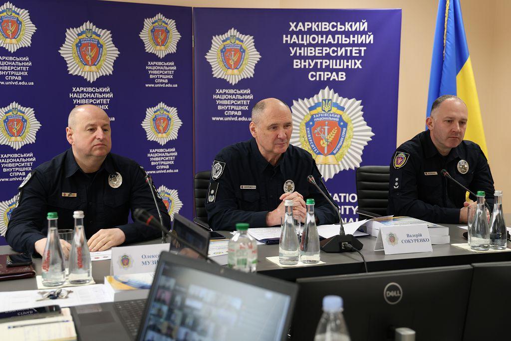 Content speeches were presented by: First Vice-President of the National Academy of Legal Sciences of Ukraine, Academician of the NALS of Ukraine, Doctor of Law, Professor, Honored Lawyer of Ukraine Oleksandr Bandurka; Academician of the National Academy of Legal Sciences of Ukraine, Professor of the Department of Administrative Law and Process of KhNUIA, Doctor of Legal Sciences, Professor, Honored Lawyer of Ukraine Serhii Husarov; Government Commissioner for Gender Policy, Doctor of Legal Sciences, Professor Kateryna Levchenko; Head of the Kherson Regional Military Administration, Candidate of Legal Sciences Oleksandr Prokudin; Rector of Lviv State University of Internal Affairs, Doctor of Law, Professor, Honored Worker of Education of Ukraine Dmytro Shvets; Rector of National Aerospace University «Kharkiv Aviation Institute», Doctor of Law, Professor, Honored Worker of Education of Ukraine Oleksii Lytvynov; Head of the MDNP in Luhansk region, Doctor of Legal Sciences, Professor, Police Colonel Oleksandr Morhunov; Professor of the Department of Criminal Law and Criminology of the ERI No. 1 of KhNUIA, Doctor of Legal Sciences, Professor, Honored Worker of Science and Technology of Ukraine Yevhen Barash; Head of the Department of Criminal Law and Criminology of the ERI No. 1 of KhNUIA, Doctor of Law, Professor Yurii Orlov.