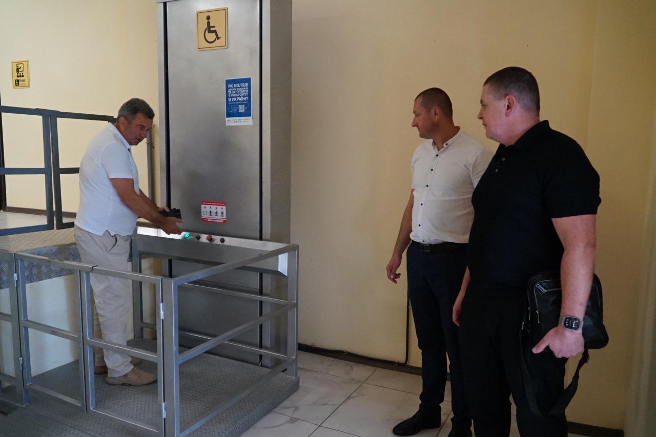 The event was attended by the Head of the Regional Service Center of the State Service Center of the Ministry of Internal Affairs in Khmelnytskyi, Ternopil and Chernivtsi regions Ihor MELNYK, Head of the Territorial Service Center in Kamianets-Podilskyi Volodymyr ZABOLOTNYI, Director of the ERI No. 4 Mykola MARCHUK and Head of the automotive training department of the barrier-free driving school of KhNUIA Oleksandr MARUNCHAK.