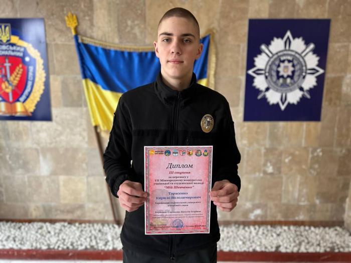 132 participants from leading universities of Ukraine competed in the category “Higher Education Institutions”. According to the results of the Competition, student Olha DOMITRYSHYNA took second place with the work “Conversation with Taras” and received a diploma of the 2nd degree. The scientific supervisor is Associate Professor of the Department of Humanities and Ukrainian Studies, Candidate of Philological Sciences Natalia KOBYLKO. The diploma of the 3rd degree was awarded to cadet Kyrylo TARASENKO with the creative work “Shevchenko and Music: Dialogue Through the Centuries”, performed under the scientific supervision of the senior lecturer of the Department of Humanities and Ukrainian Studies, Candidate of Philological Sciences Natalia YELNIKOVA.