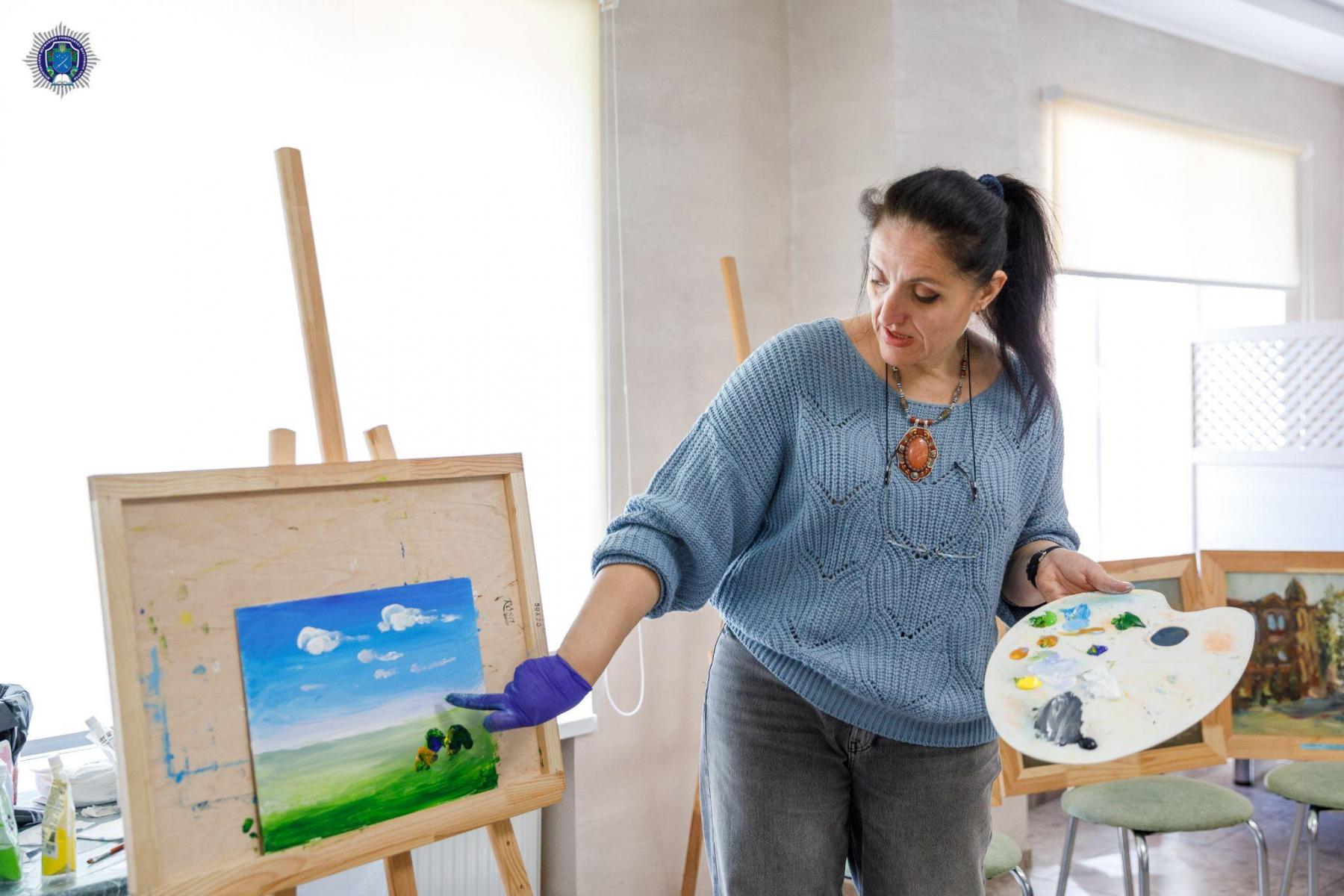 During the session, participants were introduced to basic techniques of working with paints and canvas. They practiced painting with both brushes and fingers, aiming to express emotions through color and form. For inspiration, they were shown works by Dnipro artists.