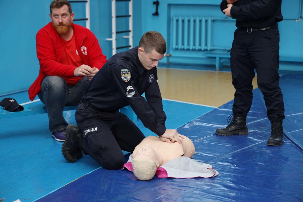 Then, representatives of the Odesa regional organization of the Red Cross Society of Ukraine conducted training for cadets on first aid, directly, using turnstiles.