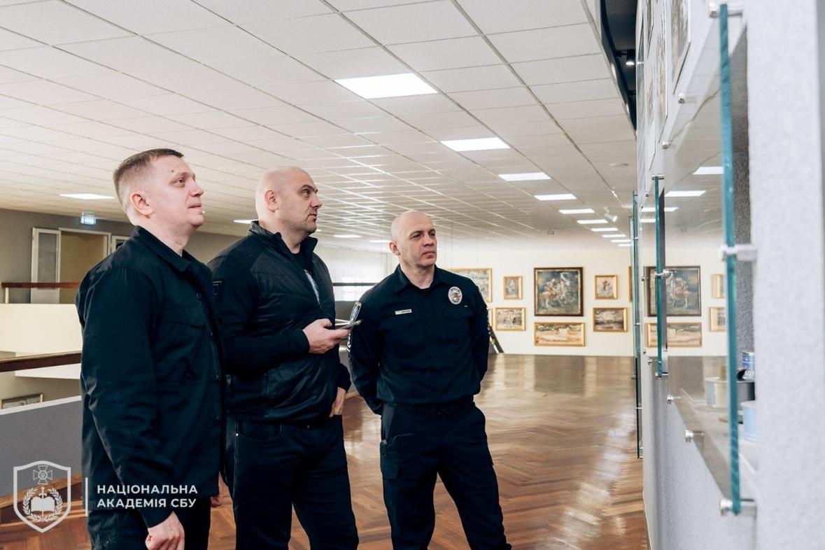 The Rector of the SBU Academy, Colonel Andrii CHERNIAK, introduced the guests to the institution’s modernized educational facilities, including the updated learning environment, assembly hall, and sports complex. Additionally, the visitors explored exhibits dedicated to the Russo-Ukrainian war and the heroism of fallen SBU officers.