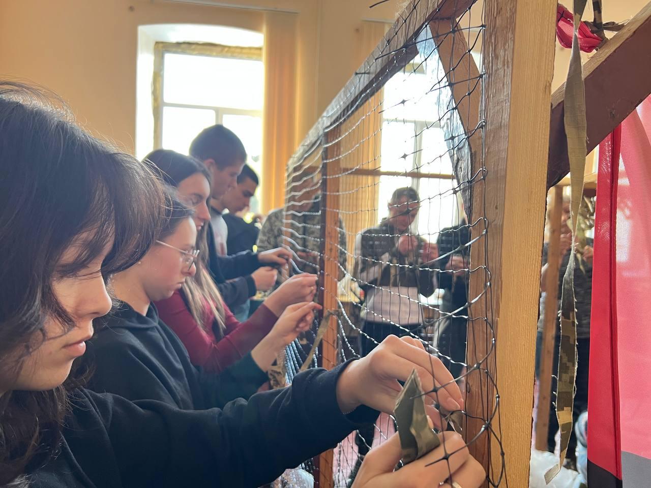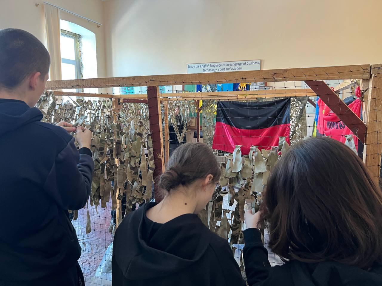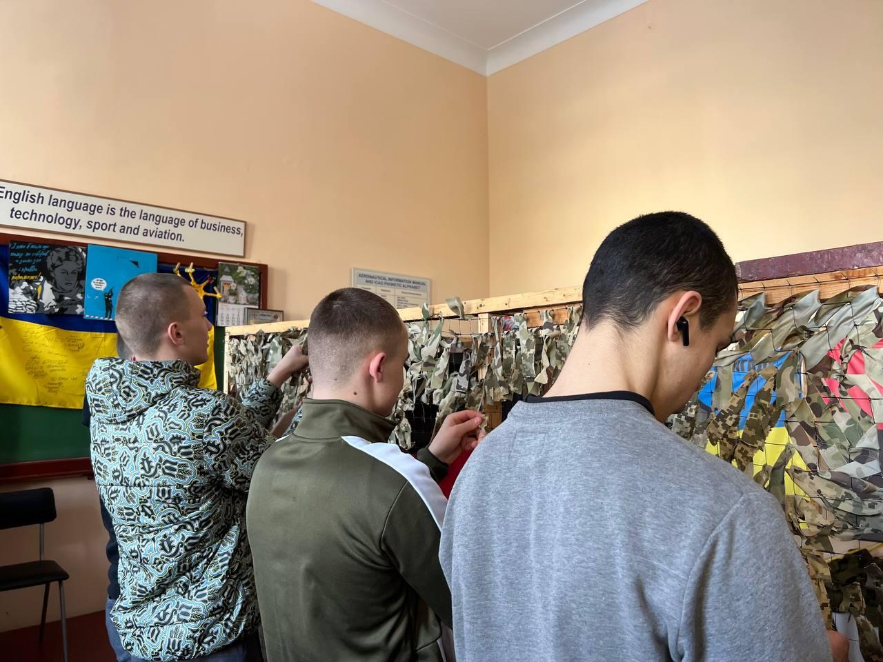 As part of the #FriendlySupport project, cadets of Sumy branch of KhNUIA joined a master class on making camouflage nets aimed at supporting our defenders. The event united the participants in the desire to help the army, improve their skills and make their contribution to the common cause.