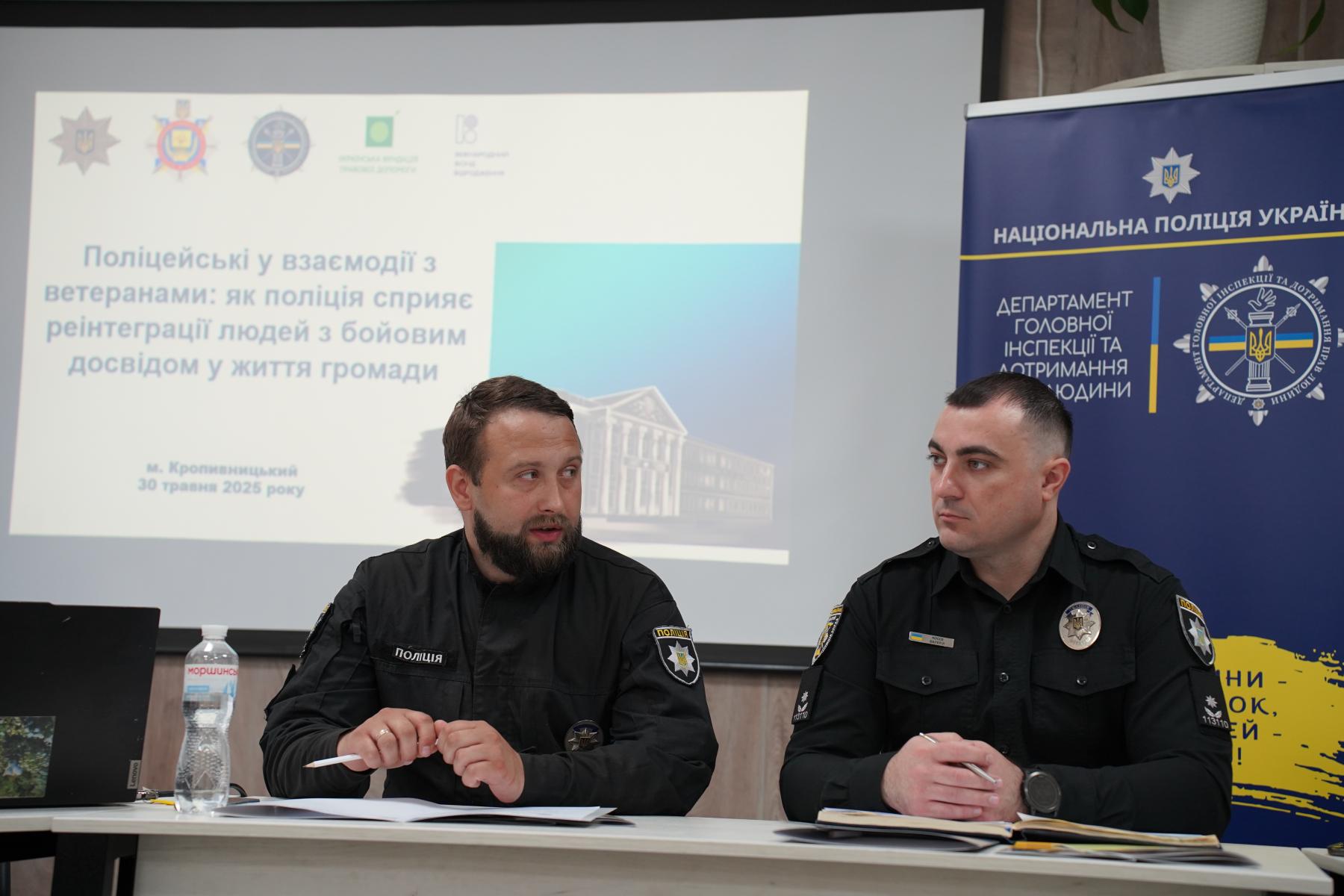 Про напрями співпраці поліції з ветеранами, взаємодію з ветеранськими і громадськими організаціями, а також спеціалізовану підготовку особового складу розповіли представник Департаменту головної інспекції та дотримання прав людини Національної поліції України Микола Сульжук і начальник Управління кадрового забезпечення ГУНП в Кіровоградській області Олександр Горбенко.
