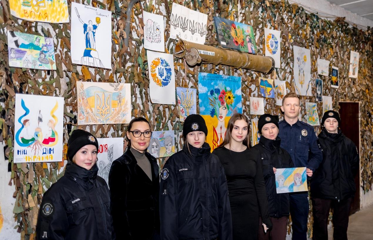 The exhibition features artwork by cadets and students of DSUIA, as well as lyceum students from the Dnipro Lyceum of Security Orientation and National-Patriotic Education of the Ministry of Internal Affairs named after O. Hostishchev.