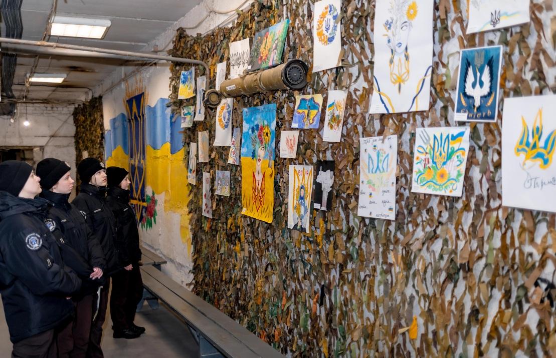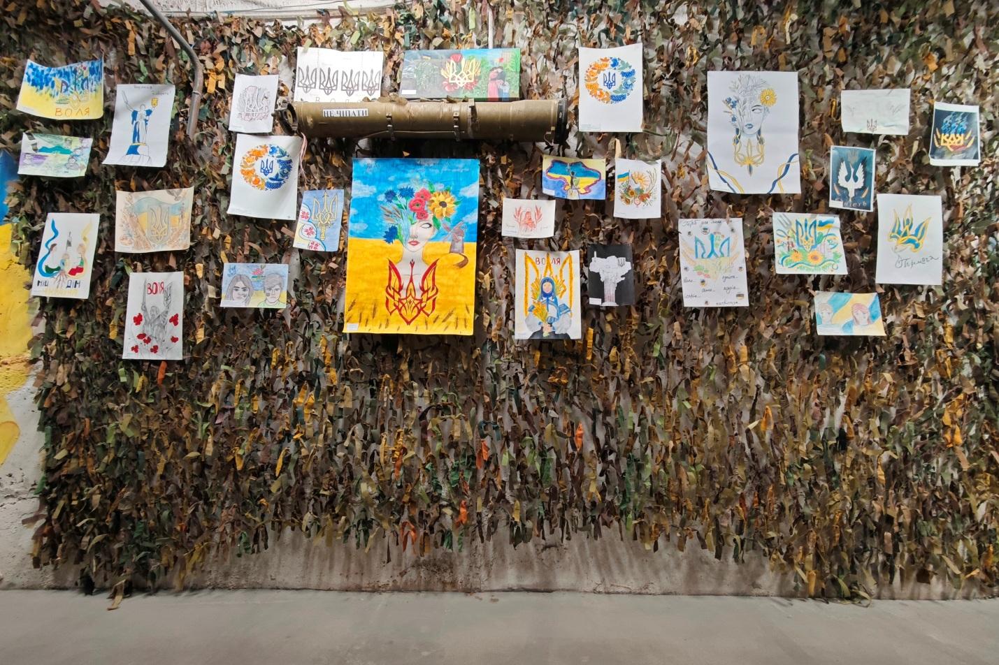 Each participant created a drawing expressing their personal vision of the Ukrainian Tryzub (Trident). The exhibition showcases nearly 30 artworks, each reflecting a unique perception of the national emblem. To ensure safety compliance, the exhibition was set up in a shelter, allowing visitors to view the display securely.