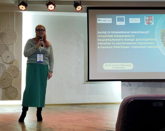 More than 70 representatives of KhNUIA, including the scientific and pedagogical staff of departments and research laboratories of Educational and Research Institutes, Sumy branch and Kremenchuk Flight College, representatives of the financial support and accounting department joined the information event organized by the National Research Foundation of Ukraine in Vinnytsia in a mixed format. Its goal is to familiarize representatives of the scientific community with grant opportunities and support tools from the National Research Foundation of Ukraine and the European Union Framework Program for Research and Innovation "Horizon Europe".