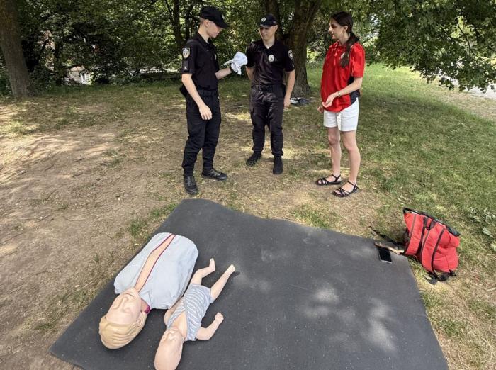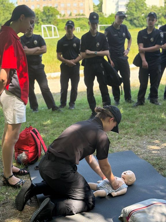 Scientific and pedagogical workers of the Department of Criminology and Forensic Expertise together with the instructor of first aid at Kamianets-Podilskyi city organization of the Ukrainian Red Cross Society Yulia KHRYSTOFOR and volunteer Tymofii SHCHURENKO conducted a practical lesson. The cadets practiced vital skills, namely: providing first aid at massive bleeding, in particular in cases of traumatic amputation of limbs; performing indirect heart massage, both in adults and children.
