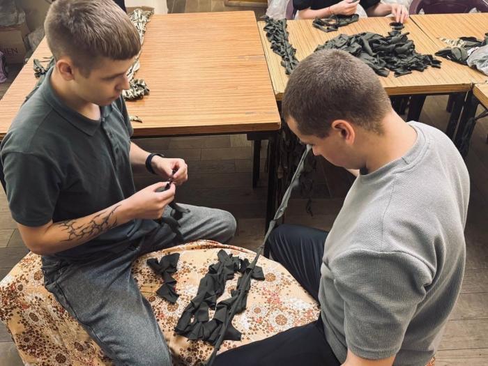 The youth worked energetically on the production of camouflage elements, which will be delivered to the front line in the near future. The event was implemented within the framework of patriotic education and the development of a volunteer environment, which is actively supported by the student-cadet council of the branch.