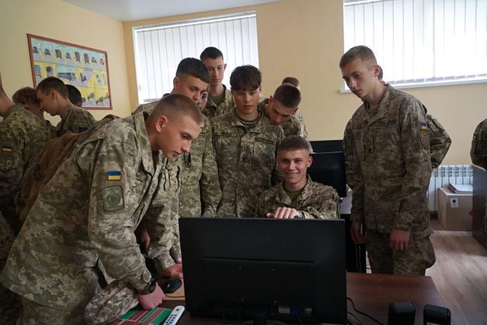The Head of the department of automotive training of the barrier-free driving school of KhNUIA Oleksandr MARUNCHAK acquainted the graduates of Kamianets-Podilskyi Lyceum with the enhanced military-physical training of Khmelnytskyi region, their educators and parents with the activities of the barrier-free driving school. He told the young people how theoretical and practical classes are held, and also introduced them to the classrooms where students practice primary driving skills on computer simulators, maximally adapted for people with disabilities. Lyceum students had the opportunity to personally test these simulators in operation and inspect the adapted cars.
