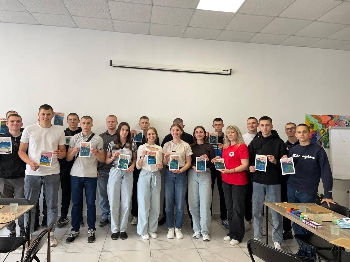 1st-2nd year cadets of Sumy branch of KhNUIA, together with the psychologist of the personnel department Hanna YAROVA, took part in a series of therapeutic classes on art therapy and neurography, which were conducted by psychologists of the Ukrainian Red Cross Society Olena BUDZINSKA and Tetiana SYCHOVA.