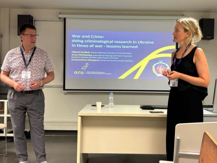 At EUROCRIM 2025, Kharkiv National University of Internal Affairs co-organised a round table discussion entitled "War and Crime: Conducting Criminological Research in Ukraine during Wartime – Lessons Learned ‘. University representative Oleksii SERDIUK presented the results of three international research projects involving KhNUIA and the Ministry of Internal Affairs of Ukraine: the Horizon Europe programme project "RESONANT", the annual monitoring of public opinion on the work of law enforcement agencies "Security and Trust", and the SafeOnline programme project "Children Online", implemented in partnership with Anglia Ruskin University (United Kingdom)..jpg)