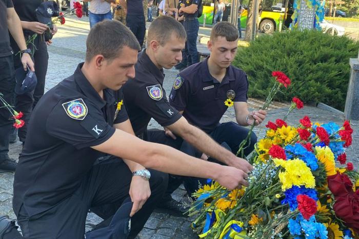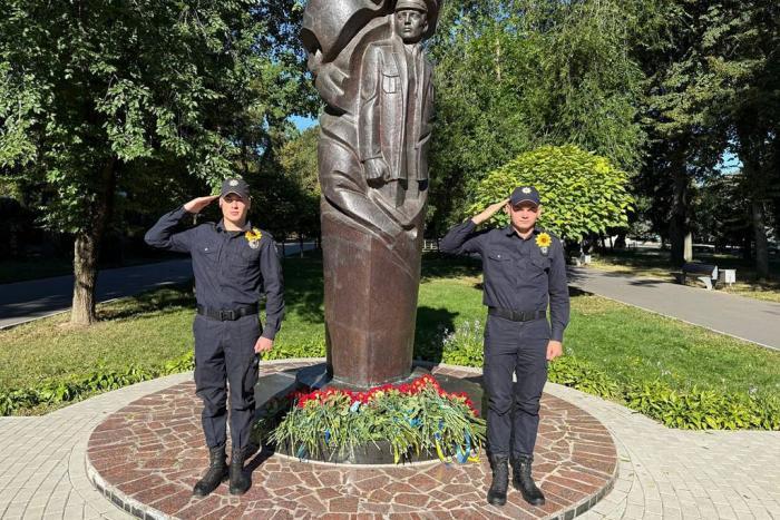 Cadets and employees of Kharkiv National University of Internal Affairs put flowers at the monuments to soldiers and law enforcement officers who died in the line of duty.