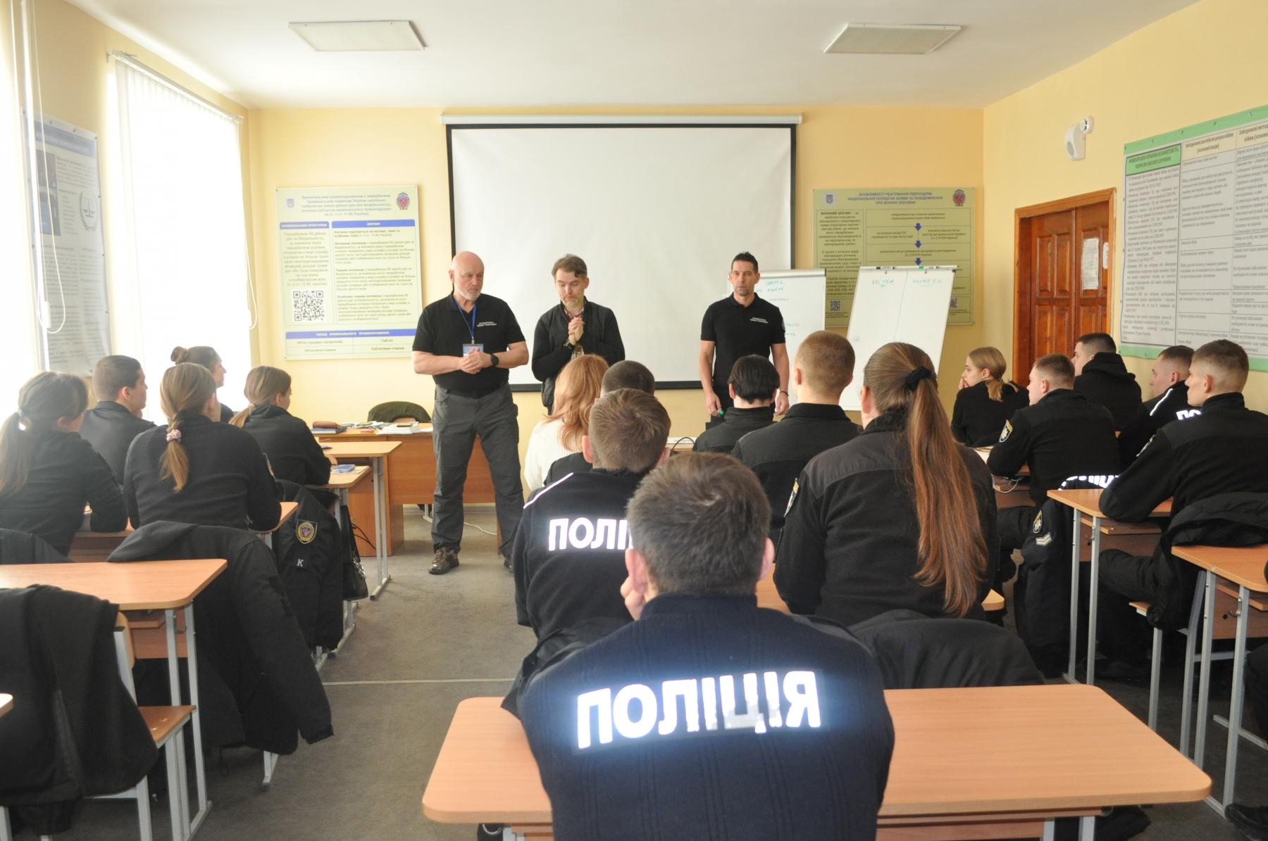 Mission Security Officer Mike HEUVE and Mission Security Assistant Nicholas VERHART, together with the Associate Professor of the Department of Tactical and Special Training of the Educational and Research Institute No. 2 of KhNUIA Tykhin SHEVCHENKO, during intensive practical training in tactical training, worked with the cadets on the skills of ensuring security during search operations, inspections of buildings and premises, operations to pursue and detain suspects, etc.