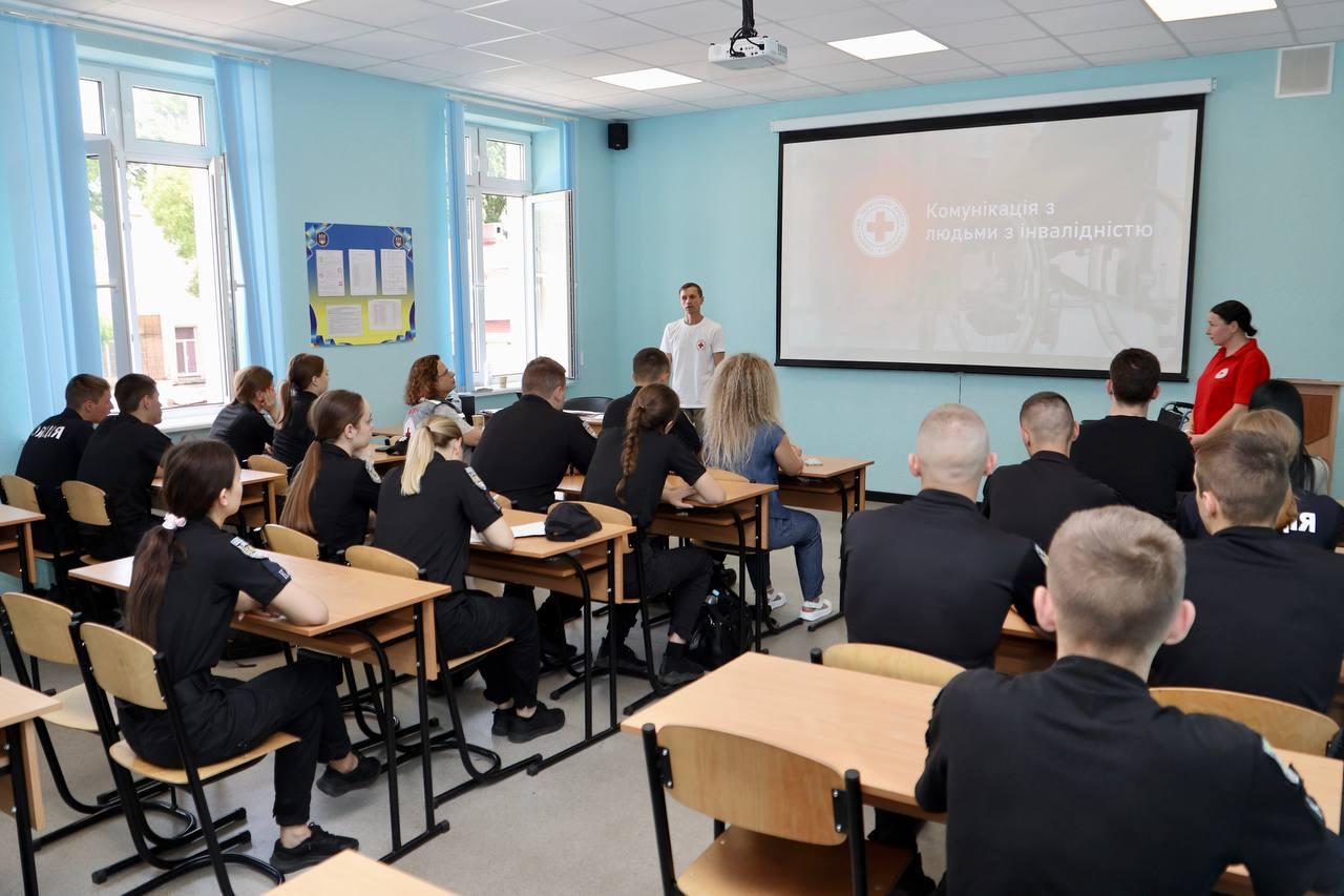 Аn information session was held at OSUIA for higher education cadets of the Faculty of Training Specialists for Pre-trial Investigation Bodies of the National Police of Ukraine on the topic: «Communicating with People with Disabilities». The event was conducted by Hennadii Medvediev, a trainer in physical and mental rehabilitation at the Odesa Regional Organization of the Ukrainian Red Cross, with the assistance of the project coordinator in the region, Olena Korablova, and employees of the Odesa City Organization.