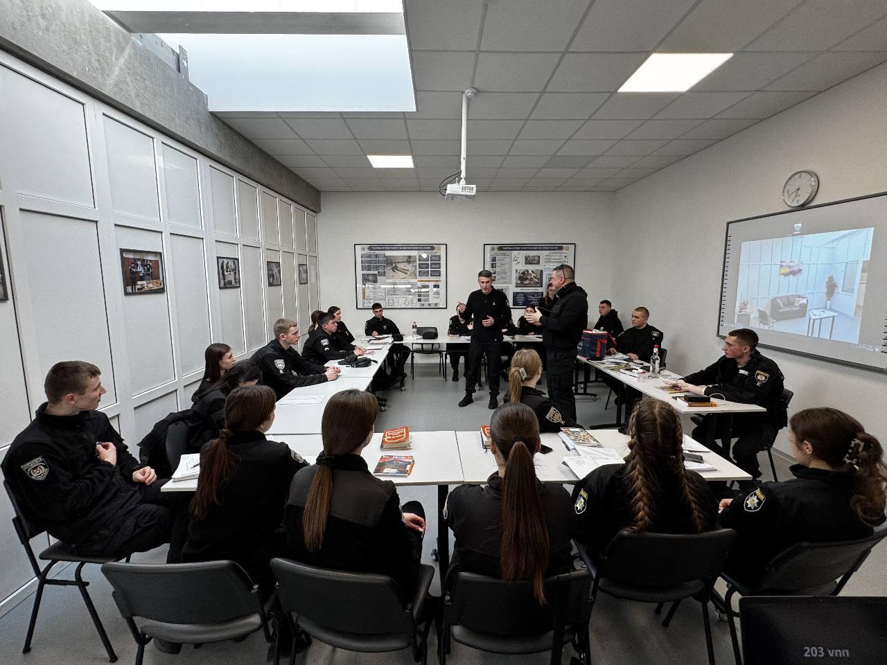 Для курсантів академії проведено заняття, на якому вони виконували симуляційну вправу з протидії торгівлі людьми в межах упровадження інноваційних підходів у підготовку майбутніх правоохоронців. Захід організували начальник Центру кримінальної аналітики Дмитро Овсянюк і професор кафедри оперативно-розшукової діяльності та національної безпеки Євген Шаповаленко.