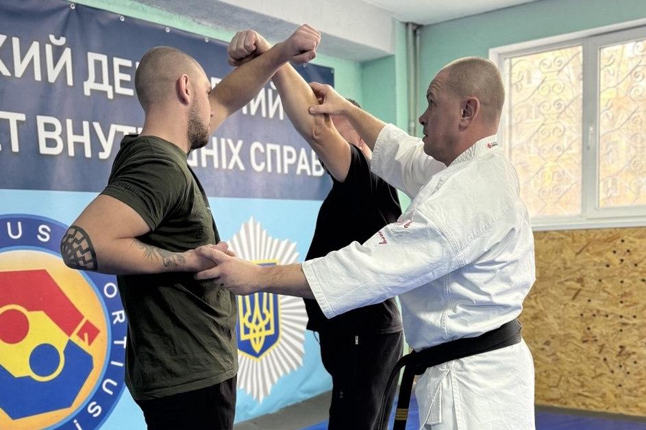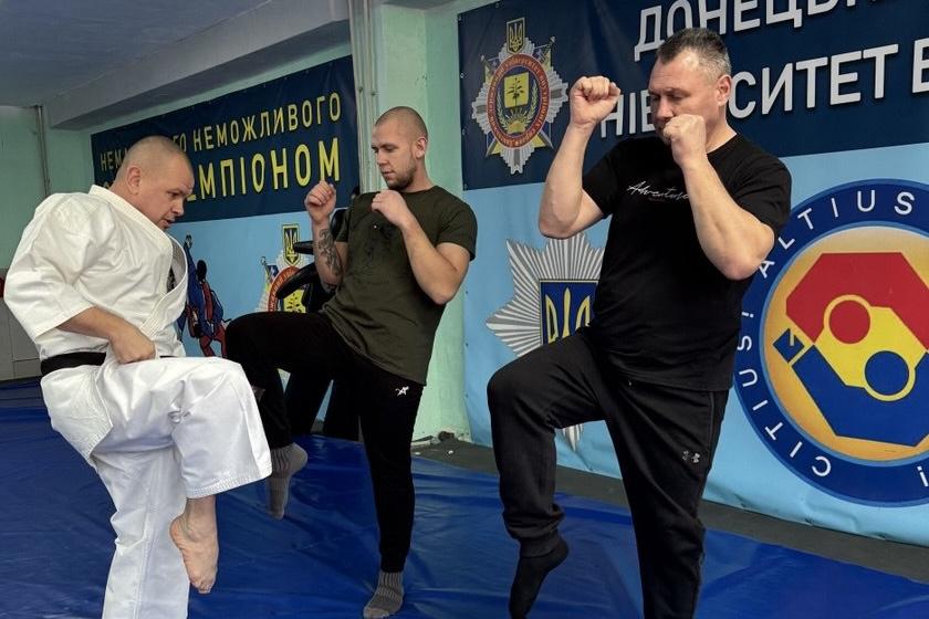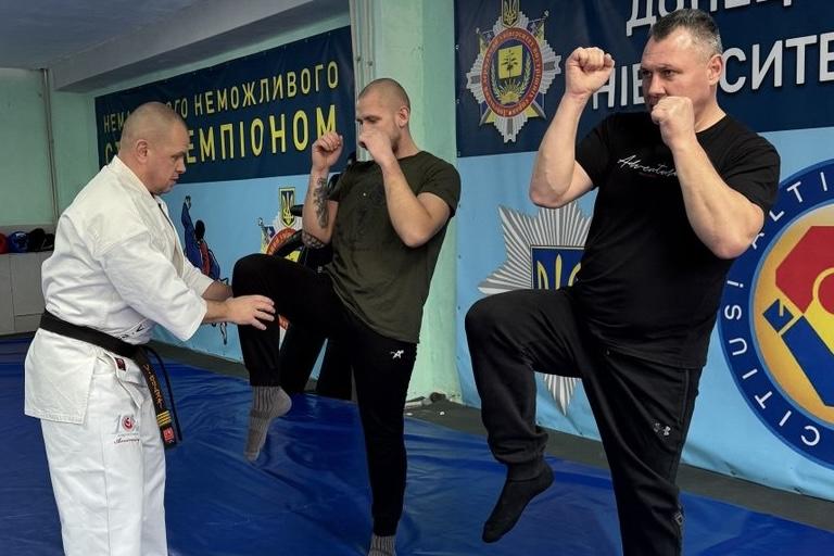 Доцент кафедри спеціальної фізичної та домедичної підготовки університету, володар чорного поясу 4 дан з карате Володимир Галімський провів заняття з бойового мистецтва для захисників України.