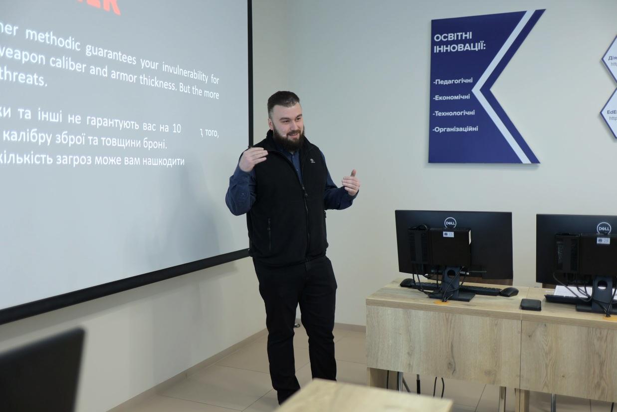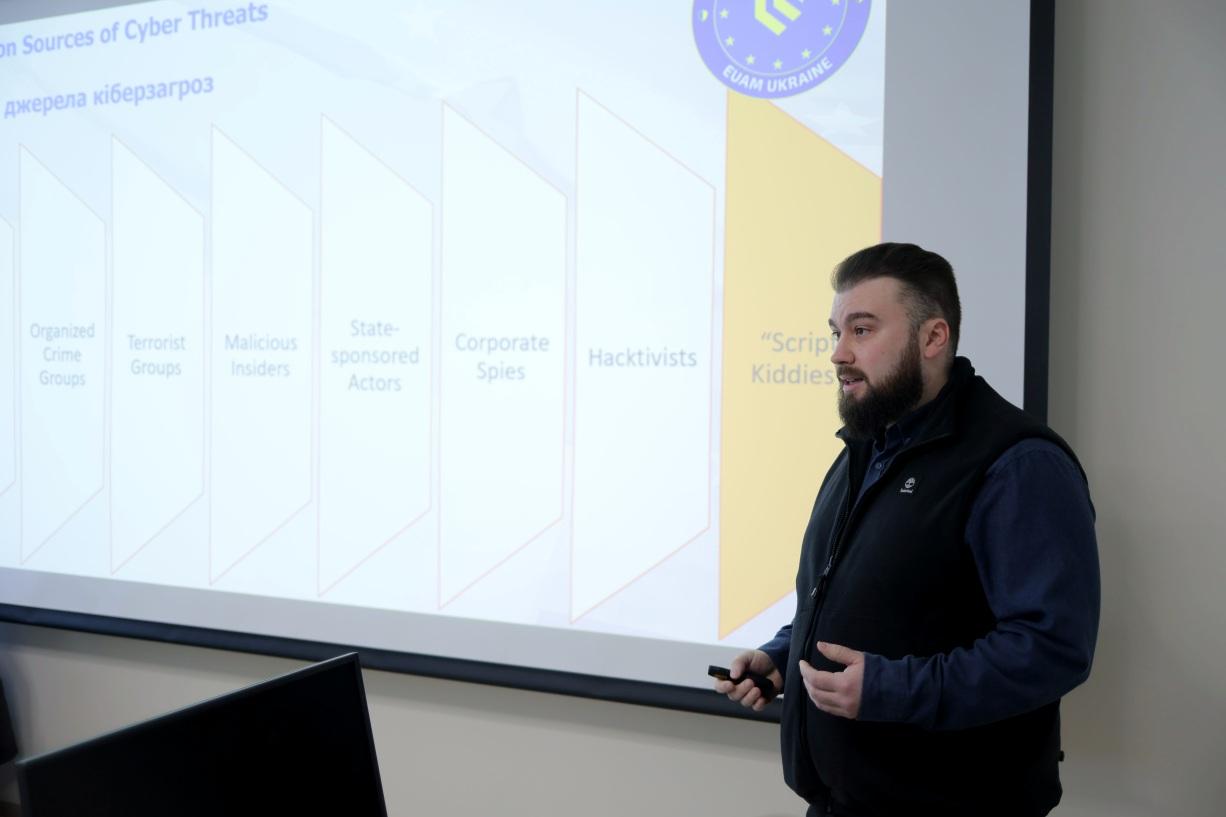 Dmytro YEHOROV, an IT specialist from the EU Advisory Mission (EUAM), and Serhii PROKOPOV, a senior lecturer at the Department of Information Technology, conducted a session on “Basic Cybersecurity for Civil Security Sector Personnel.”
