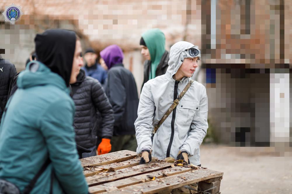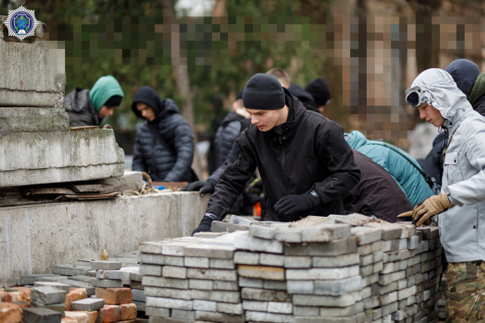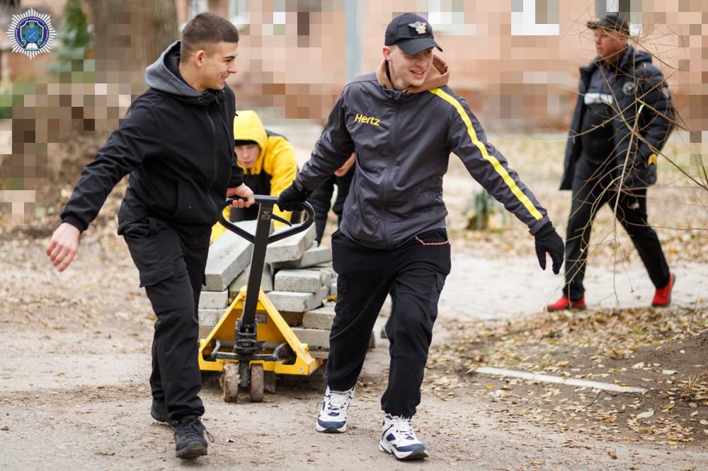 The personnel of the Faculty for Training Specialists for Criminal Police Units of the National Police of Ukraine participated in maintenance work to improve the grounds of a medical facility. The cadets cleaned up fallen leaves, cleared and organized adjacent areas, and assisted in transporting construction materials.