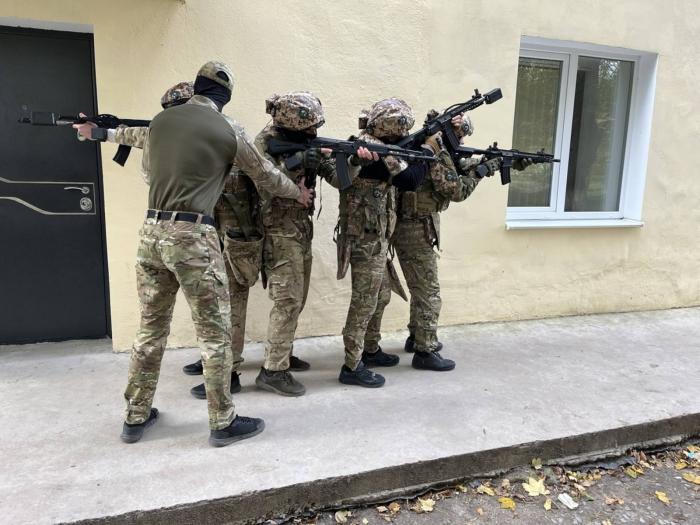 The lesson was held using training weapons, Laser-tag and personal protective equipment, body amour and helmets.