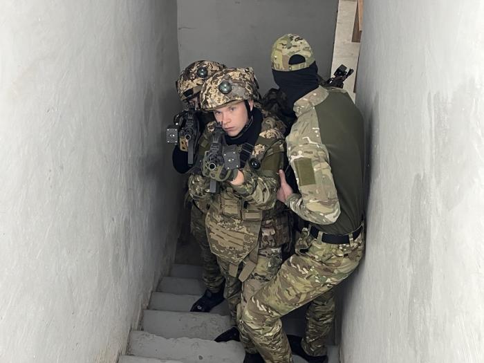 During the event on the topic ‘Tactic work in small groups during completion the service and fighting missions’, education seekers trained practical skills in the combat condition, actions during the approach to building, their examination and clearance of property.