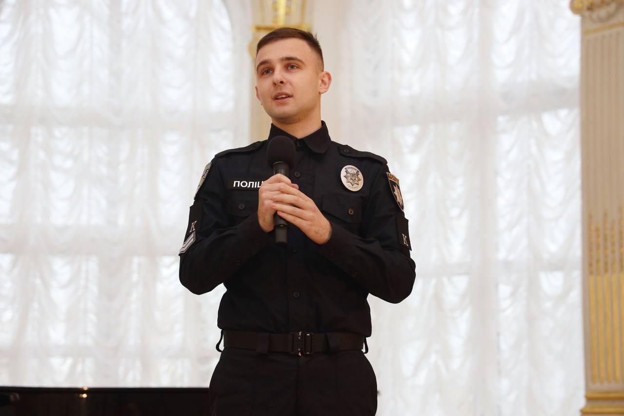 Andrii Bondarenko, a 2nd year cadet of the Educational and Research Institute for Training Specialists for Criminal Police Units for the NPU, read his poems about the war, defenders and the bright future of Ukraine.