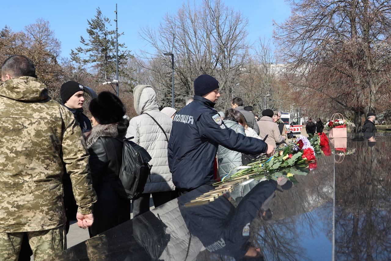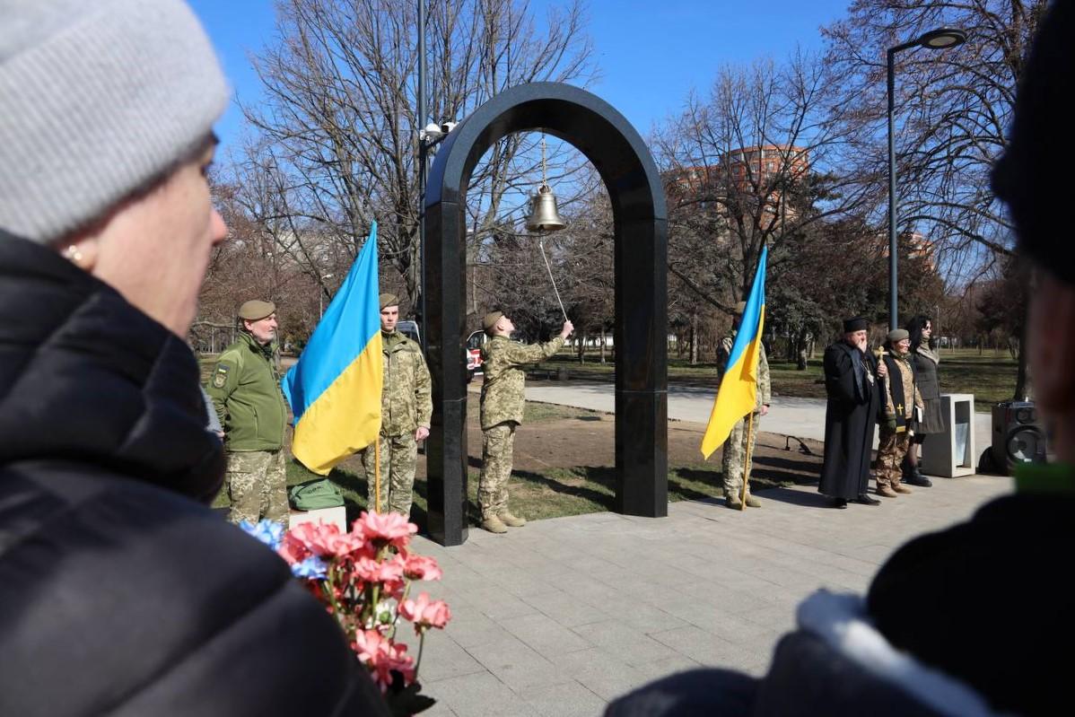 February 28, on the last day of the month, cadets of Odesa State University of Internal Affairs took part in the «The bell of memory» ceremony held around the memorial to the “Fighters for Ukraine” near the Odesa Regional Military Academy. These ceremonies are held at the initiative of the Veterans HUB ODESA, the NGO “Hearts of Mothers of Odesa Region” and the “Family of Angels of Light”.