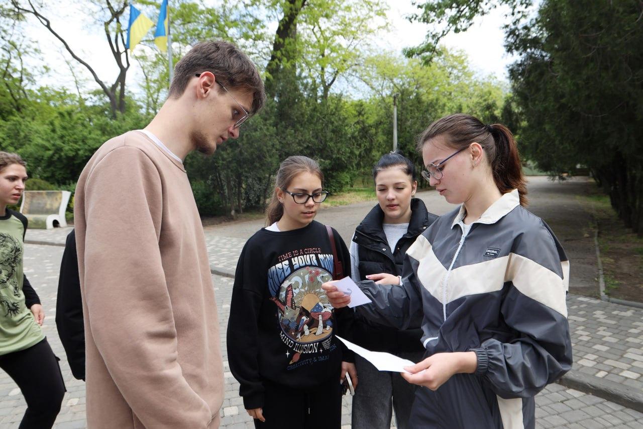 The quest, which took place in the Shevchenko Park, became a vivid example of a non-standard approach to career guidance work. Within two hours, a team of applicants, accompanied by university cadets, receiving messages with tips, found locations located in the park and had to find hidden letters.
