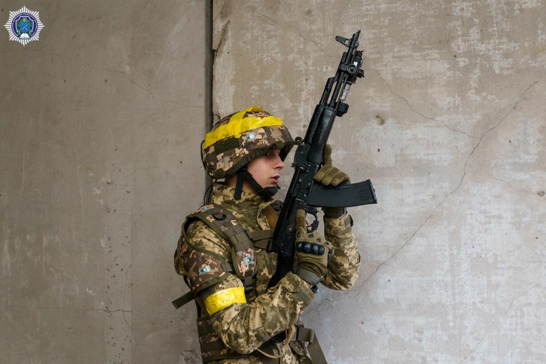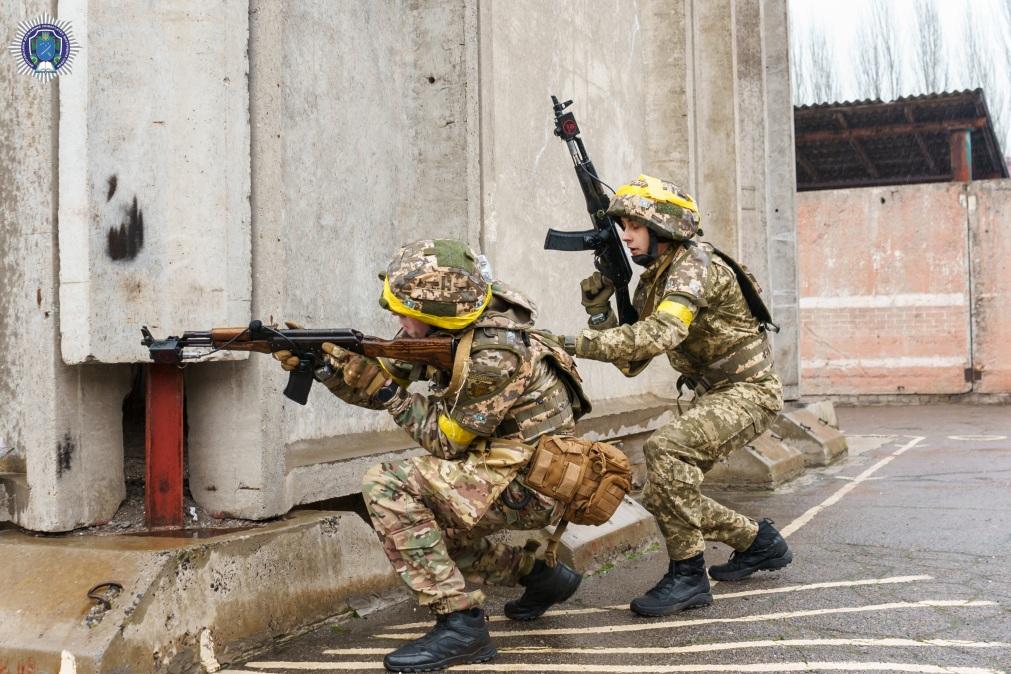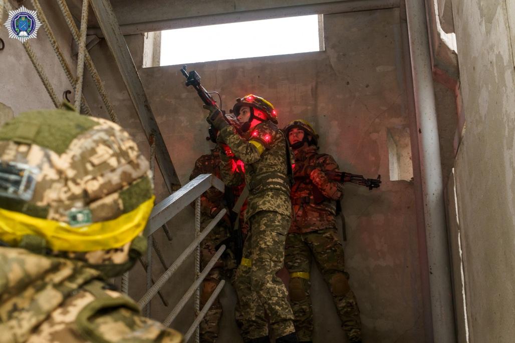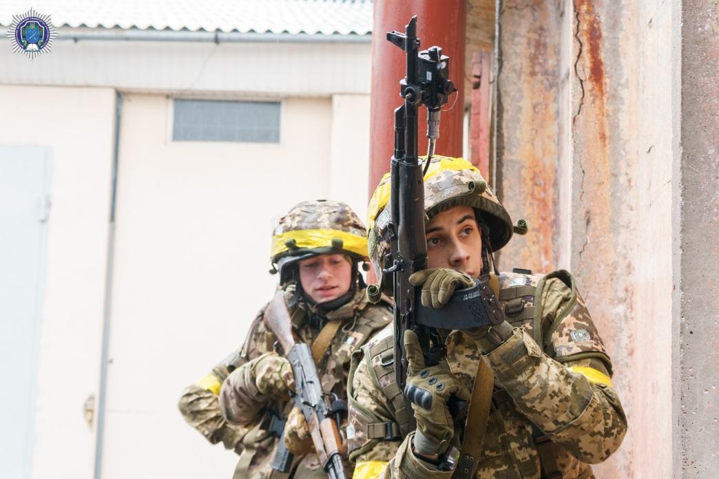 In the practical phase, cadets practiced small tactical group actions while apprehending an armed offender hiding in a building and simulated combat in an urban environment. Under the guidance of experienced instructors, they worked on approaching a building, entering a room, perimeter control, and suspect detention.