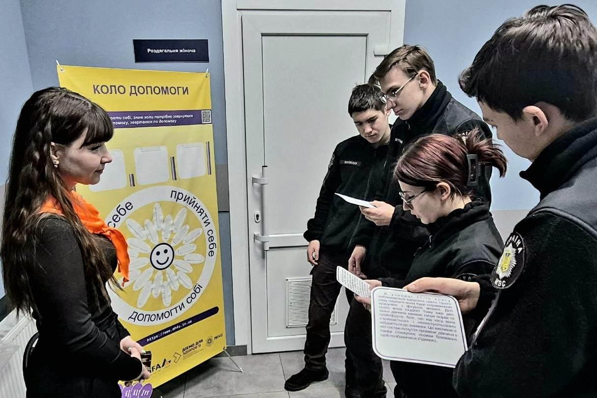 For the 1st year students of the Dnipro Lyceum of Security Orientation and National-Patriotic Education named after Oleksandr Hostishchev of the MIA, an interactive educational exhibition “Mental Trek” was conducted by the team of regional facilitators within the framework of the Ukrainian-Swiss project “Mental Health for Ukraine”.
