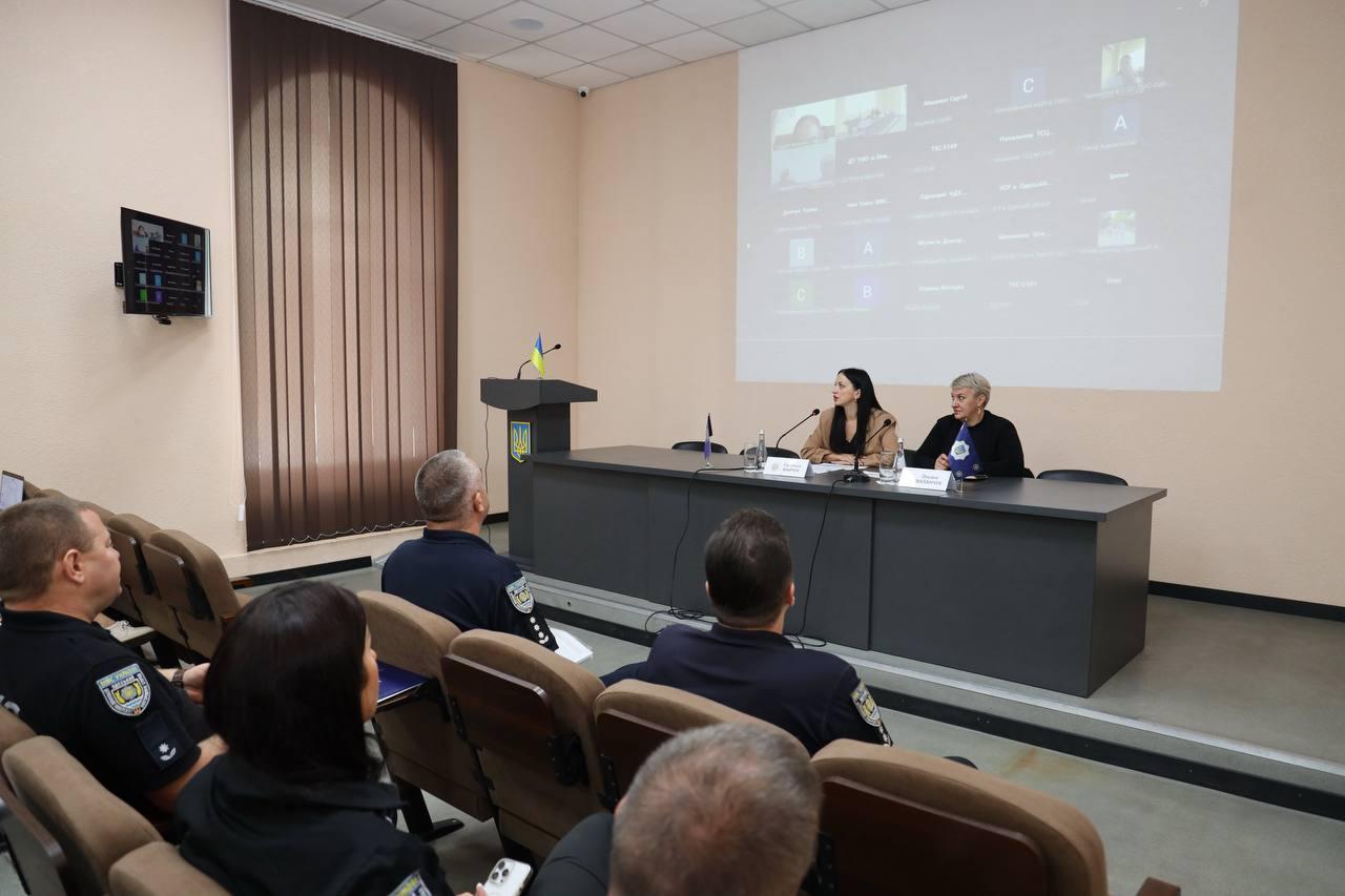 Associate professors of the Department of Administrative and Legal Disciplines of the Institute of Law and Security Oleksandr Zhyltsov and Viktoriia Sirko, associate professor of the Department of Criminal Law and Criminology of the Faculty of Specialist Training for Pre-Trial Investigation Bodies of the National Police of Ukraine Viktor Yarosh and associate professor of the Department of Administrative Law and Process of the Faculty of Specialist Training for units of preventive activities of the National Police of Ukraine Hanna Sherstiuk. The deputy head of the monitoring and zonal control department of the Odesa Department of Internal Affairs, police lieutenant colonel Oksana Malanchuk, also joined the training, who familiarized the training participants with the practical aspects of prosecution for corruption and corruption-related offenses.