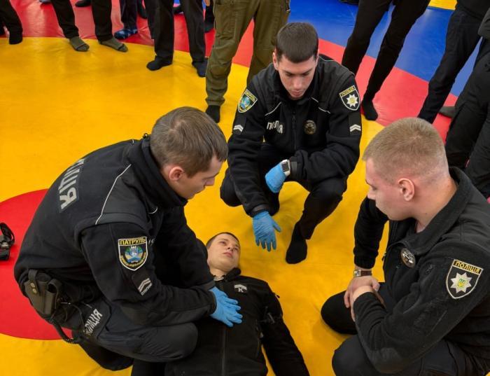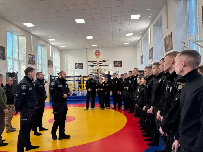 Lecturers of the Department of Tactical and Special Training of KhNUIA Volodymyr Yevtushok, Serhii Kuchynskyi and police officers of the platoon of the Patrol Police Battalion for the Service of the National Police in Khmelnytskyi Region Yurii Syrotiuk and Maksym Trintsev conducted a practical lesson for cadets.
