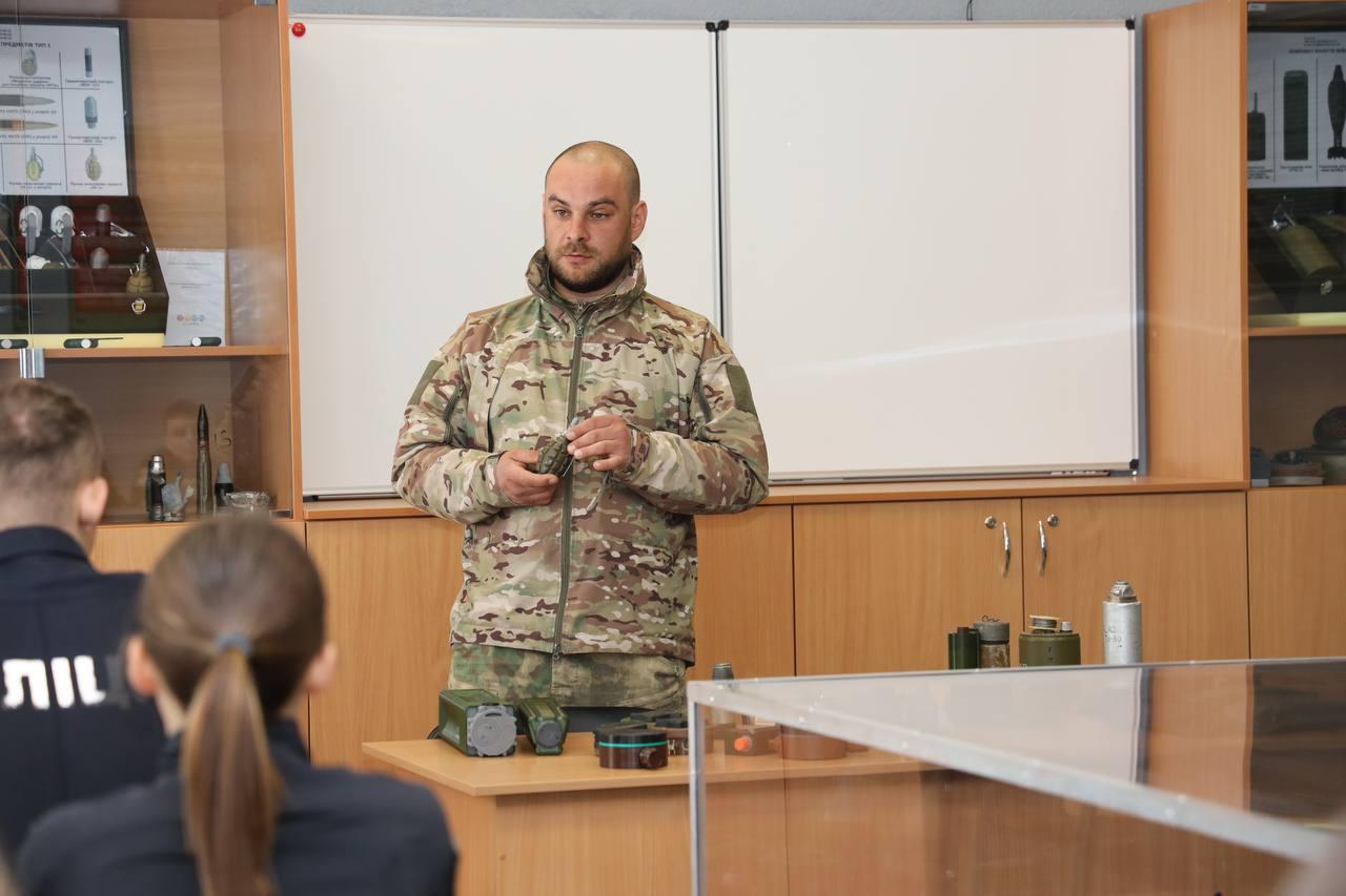 Answering the cadets' questions, Roman Muzychenko repeatedly emphasized the importance of observing safety measures when detecting explosive objects and materials.