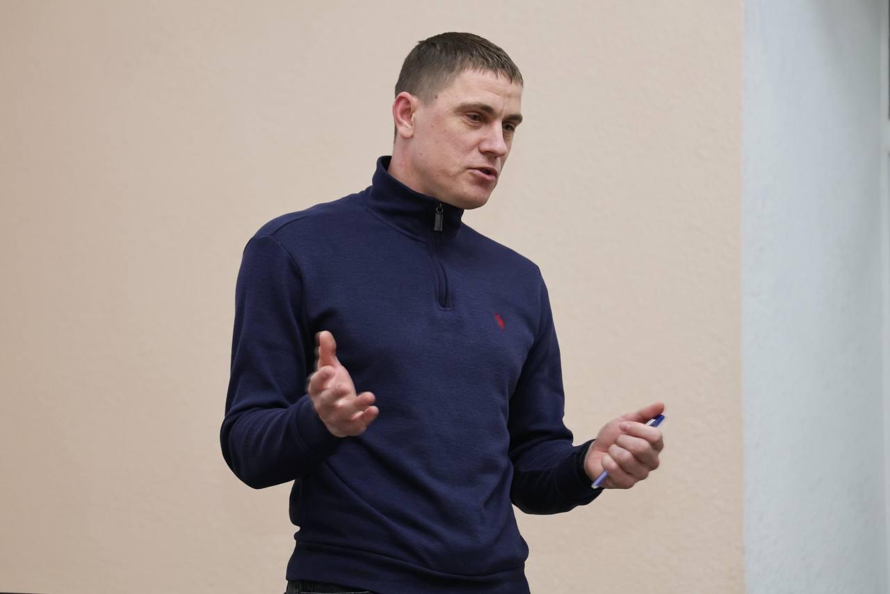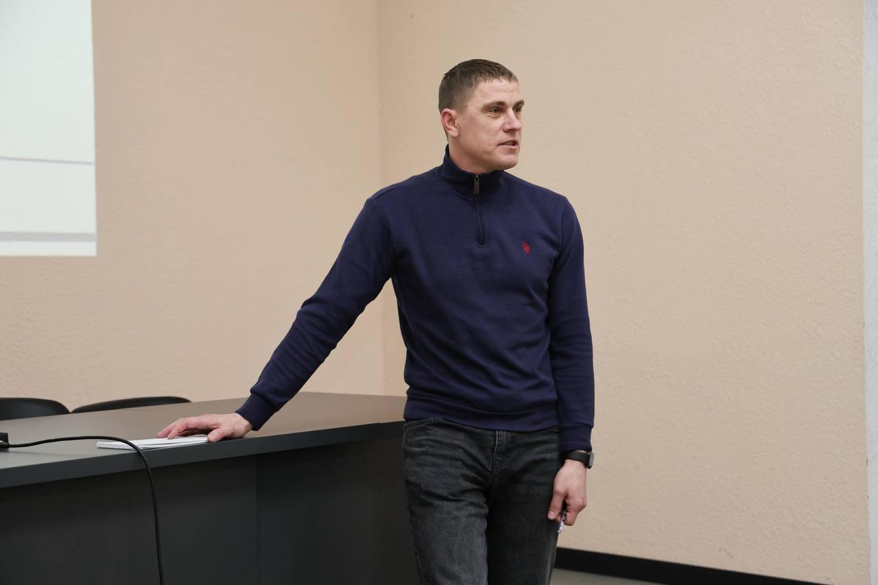 The guest of the event was Oleksandr Lienik, a senior lieutenant in the Marine Corps and father of first-year student Alina Lienik. He shared his combat experience, talked about his service, and described the trials he had to endure, including three and a half years in captivity. His story was an example of the courage, resilience, and fortitude of Ukrainian soldiers.