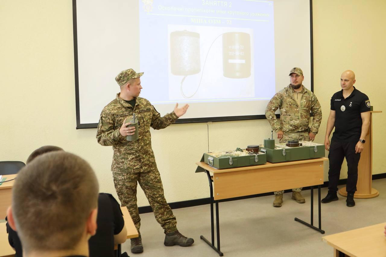 For cadets of the Faculty of Training Specialists for Preventive Activities of the National Police Academy of OSUIA, Senior Lecturer of the Department of Tactical and Special Physical Training, Police Lieutenant Colonel Yevhenii Proskurnia organized a binary class on the academic discipline «Tactical and Special Training» on the topic «Classification and Tactical and Technical Characteristics of Explosive Objects».