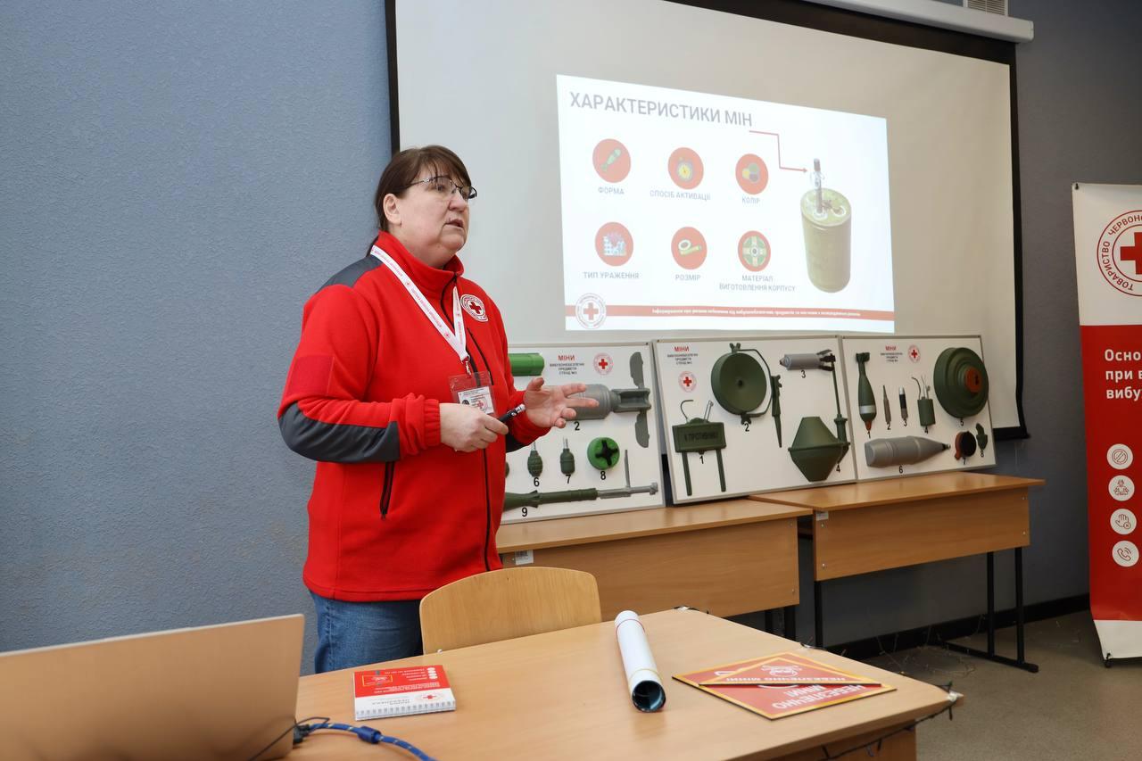On January 20, at OSUIA, Olena Reutseva, a representative of the Ukrainian Red Cross Society, held an informational and educational event for students of the Institute of Law and Security and cadets of the Educational and Scientific Institute for Training Specialists for Criminal Police Units of the National Police of Ukraine on the topic: «Informing about the risks of explosive objects and training in risk prevention».
