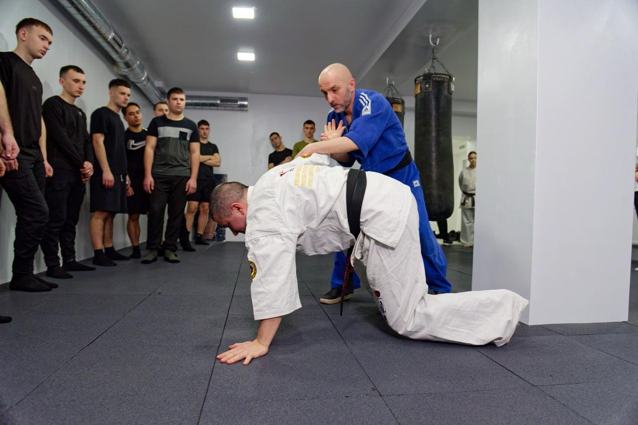 During the session, cadets practiced basic techniques for personal safety and confident situational control in various body positions. Special attention was given to coordinated actions, movement coordination, and proper situational assessment.