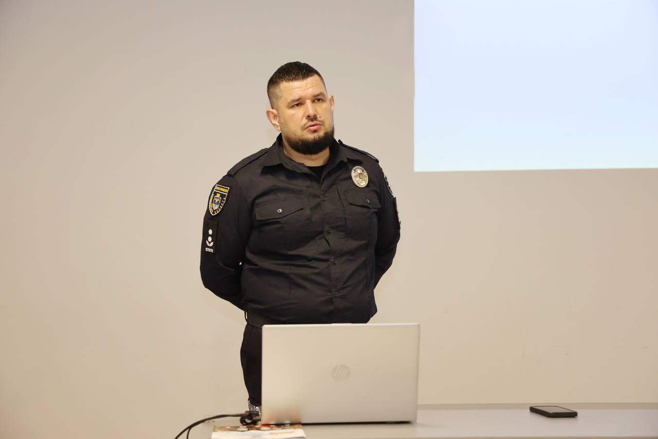The Head of the Department for Investigation of Crimes Committed in the Conditions of Armed Conflict of Main Directorate of the National Police in Mykolaiv region, Lieutenant Colonel Oleksandr Sydorenko, gave an introductory lecture for cadets of the Faculty of Training of Specialists for Pre-trial Investigation Bodies of the National Police on the topic «Documentation and investigation of war crimes».