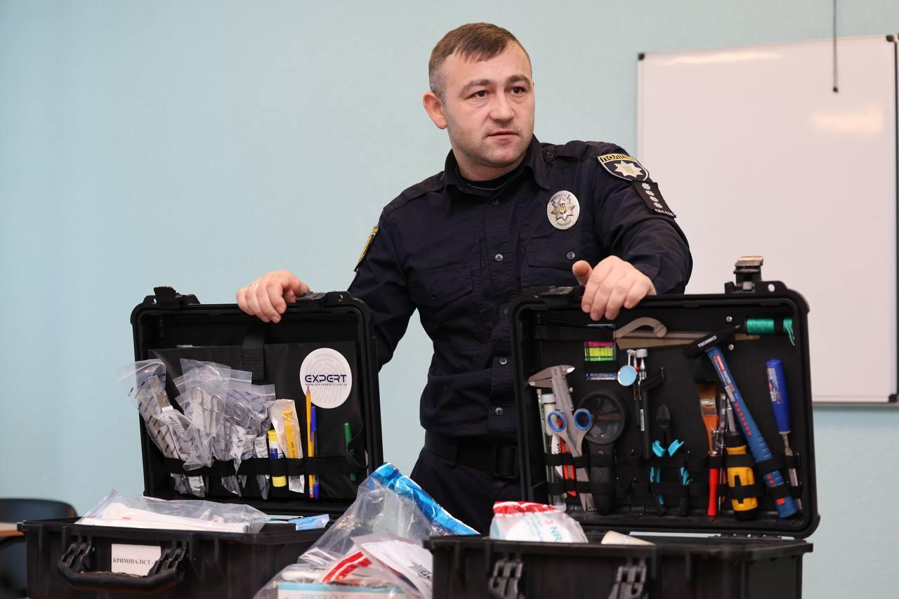 In addition, Police Major Vadym Kryvoruchenko, Deputy Head of the Criminal Investigation Department of Odesa region Police Department No. 1, spoke about the capabilities of a modern mobile forensic laboratory and demonstrated various types of forensic kits used to examine crime scenes.