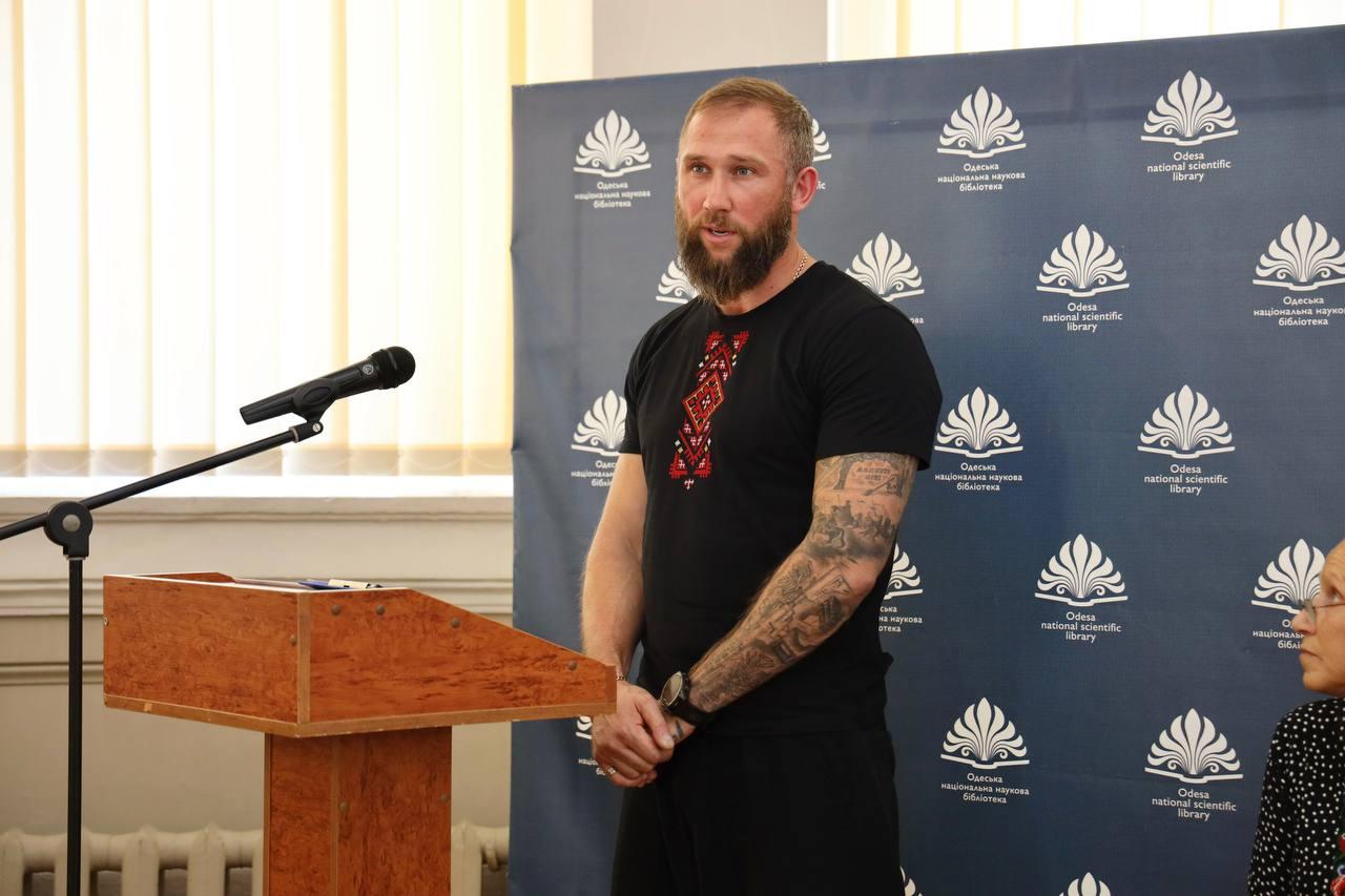 Representatives of the OSUIA veterans of the Russian-Ukrainian war Serhii Kozachenko and Oleksandr Diuzhykov took part in an event organized by the Odessa National Scientific Library on the occasion of the Day of Remembrance of the Defenders of Ukraine, who gave their lives for the independence, sovereignty, and territorial integrity of our state.