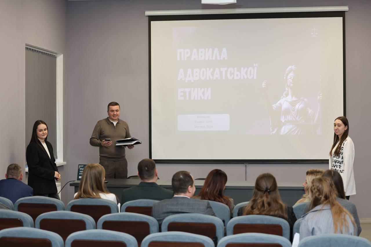 Fourth-year students Dariia BEREZHNA and Ilona KASHCHYNA gave a presentation in which they examined in detail the main provisions of the Rules of Professional Conduct for Lawyers and their practical application.