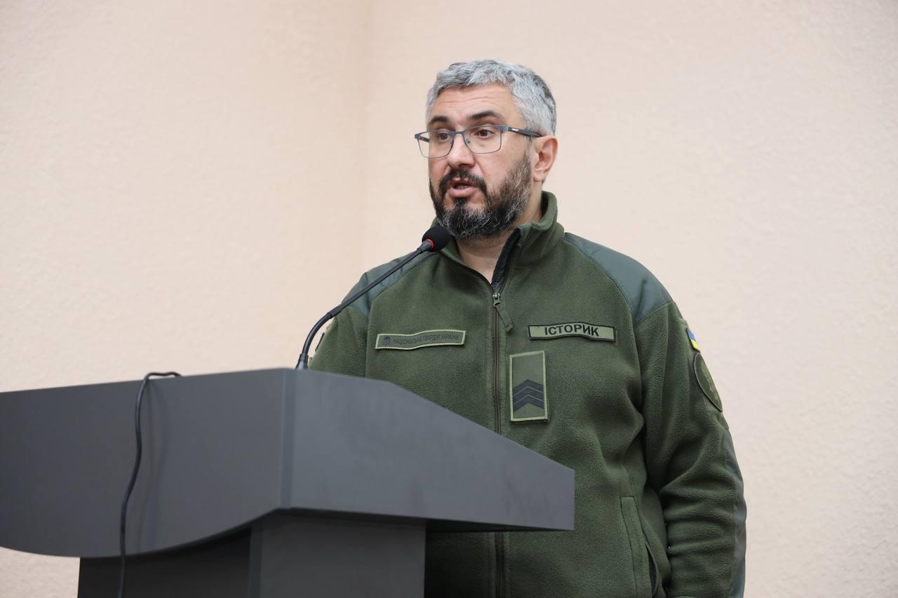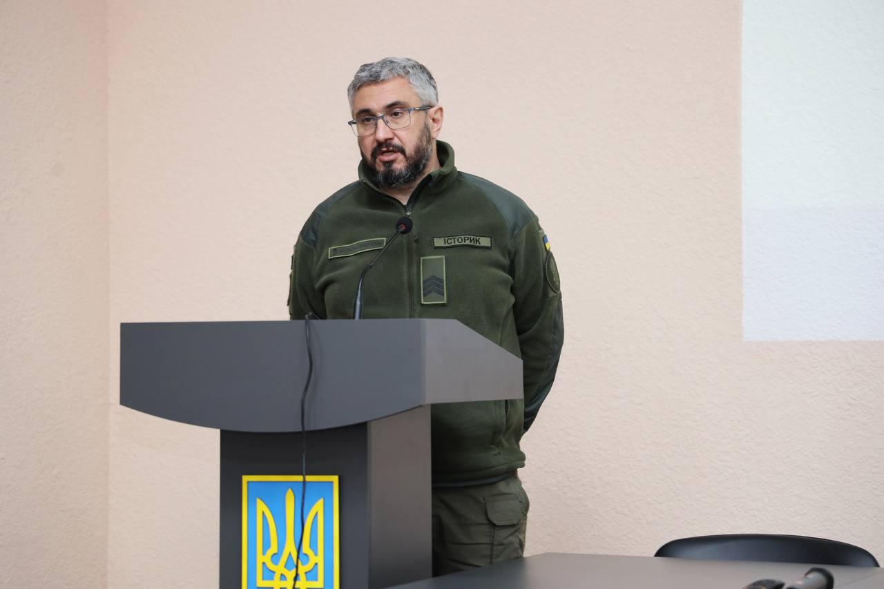 Specialists of the Department of Social and Humanitarian Work of the OSUIA organized a meeting of higher education students with a well-known historian and journalist, a serviceman of the 13th Operational Brigade of the National Guard ‘Khartiia’, Sergeant Vakhtang Kipiani.