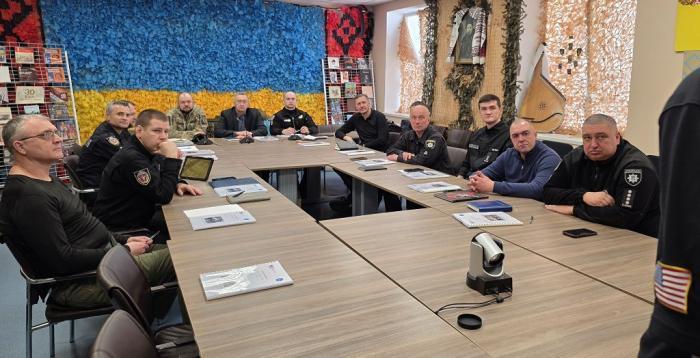 The course is conducted by Mark William Winfield, an Liaison Officer for State Universities of Internal Affairs of the United Kingdom of Great Britain and Northern Ireland, as well as instructors of the Tetra Tech company, Vadym Nikitchyn and Oleksii Kolbun. Scientific and pedagogical staff of the Departments of Tactical and Special Training, Special Physical Training, Firearms Training of the ERI No. 2, the Department of Basic General Military Training, as well as representatives of the Departments of Service Organization, of Weapons and the management of the ERI No. 2 and No. 3 courses participate in the training from KhNUIA.1.jpg)