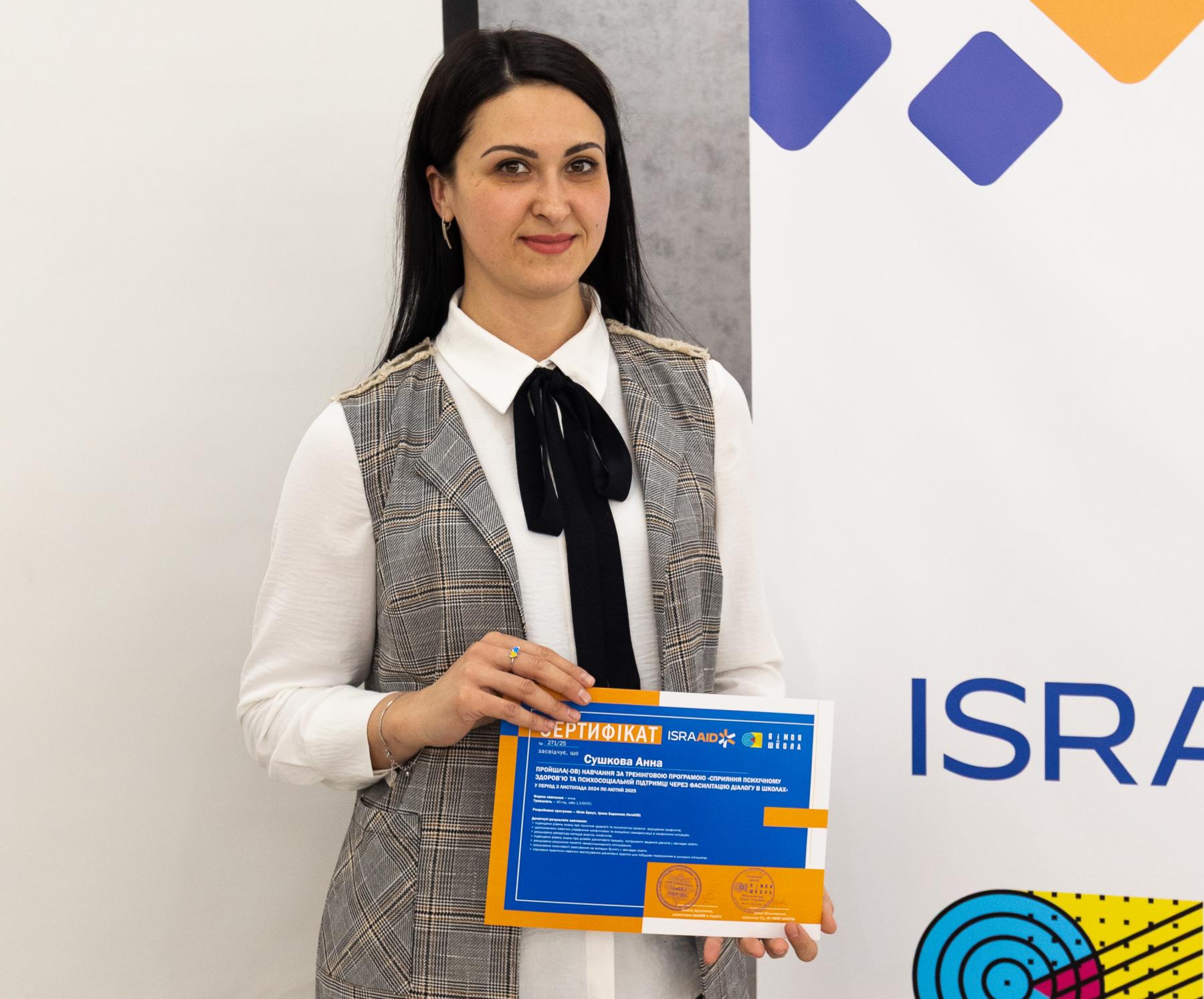 Anna Sushkova, Senior Lecturer at the Department of Legal Support of Entrepreneurial Activity and Financial Security of KhNUIA, completed a course as part of the four-month project “Promoting Mental Health and Psychosocial Support through Dialogue Facilitation” by “ME AND MY SCHOOL” in cooperation with the international non-governmental humanitarian organization “IsraAID in Ukraine”, which took place in Kyiv.