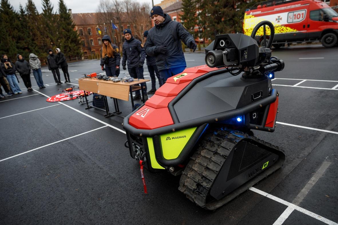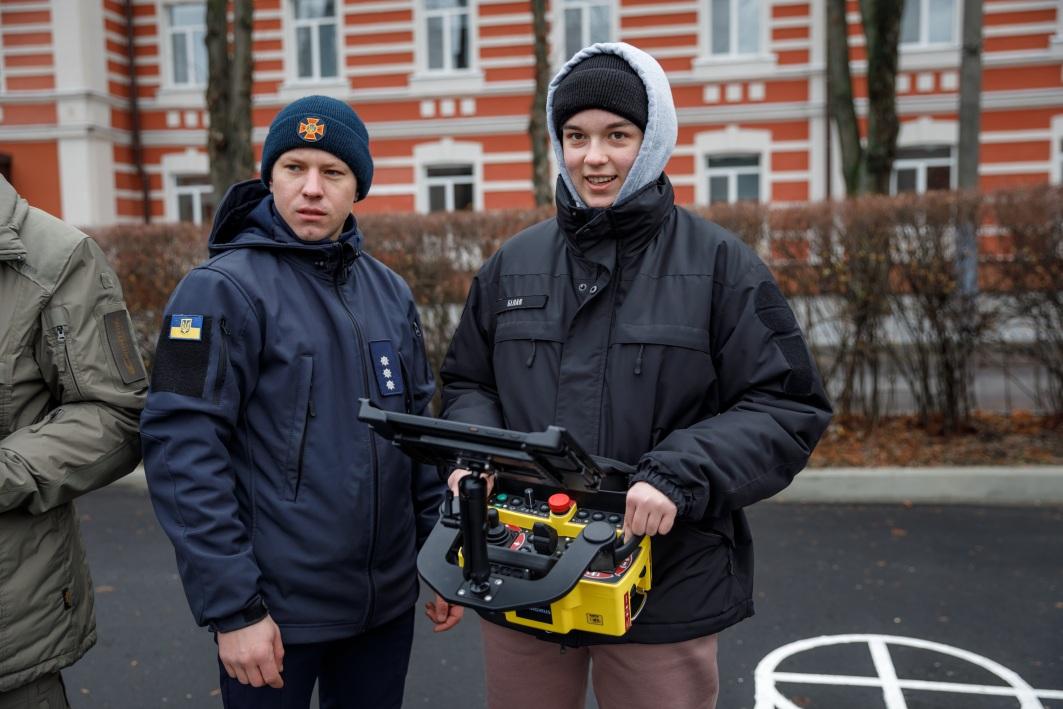 Students of the Dnipro Police and National-Patriotic Education Lyceum named after Oleksandr Hostishchev were introduced to the Magirus Wolf R1 robot, which is used by rescuers. This robot allows State Emergency Service employees to avoid dangers such as structural collapse or intense heat by operating from a safe distance. The robot is controlled using a special remote, transmitting real-time images via mounted cameras.